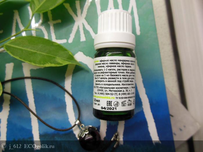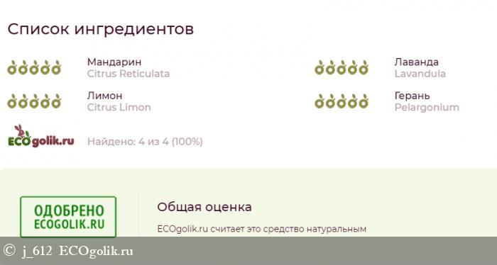 Состав: Citrus reticulata (эфирное масло мандарина красного), Lavandula angustifolia (эфирное масло лаванды), Citrus limon (эфирное масло лимона), Pelargonium graveolens (эфирное масло герани).