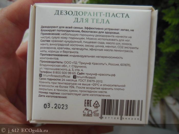 Дезодорант-пасту для тела и ног от Триумфа красоты использовала исключительно по стандартной схеме - то есть для нанесения на подмышечную область, но можно смело и на ноги, если имеется проблема повышенного потоотделения стоп.