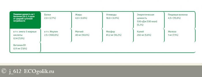 Состав (взят с официального сайта бренда): финики сушеные, цедра апельсина сушеная, изюм, семена тыквы, кешью, пищевое волокно из цикория - инулин, бразильский орех, семена чиа, имбирь молотый. Продукт может содержать фрагменты косточек, незначительное количество арахиса.