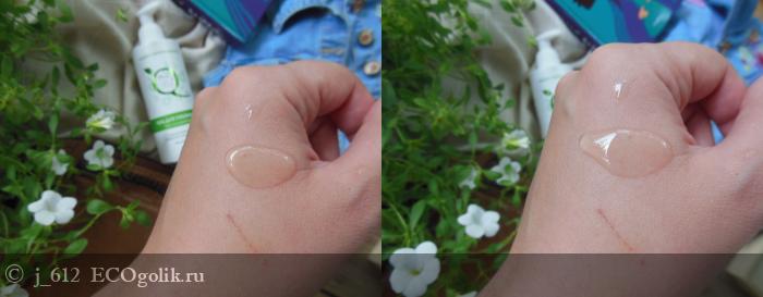 Гель прозрачный, не слишком густой, но и не прям жидкий - при наклоне убегает не стремительно.
