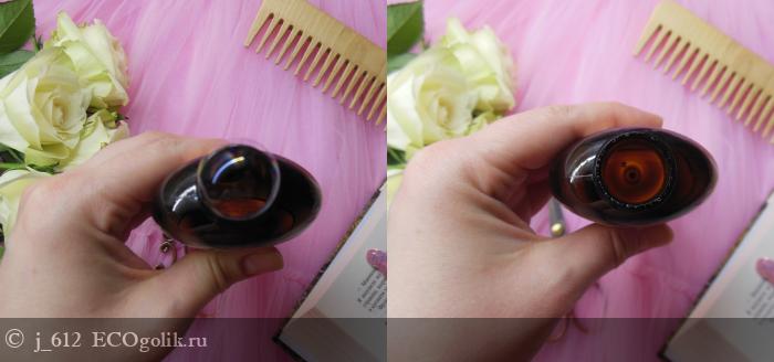 Флакончик оснащен пластмассовой крышкой диск-топ, которая спрятана сверху защитным прозрачным пластиковым колпачком. Отверстие небольшое, но вполне комфортное.