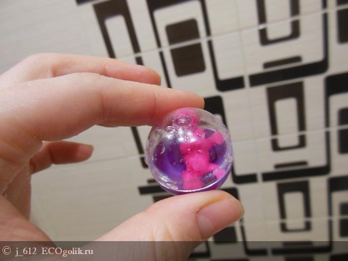 Стоило гейзеру раствориться, обнажив пластиковый шар - ребенка уже не остановить. Да чего таить, меня саму тоже распирает узнать, что же нам попалось на этот раз. Ярко-розовая животинка, с которой потом так весело продолжать купательные игры.