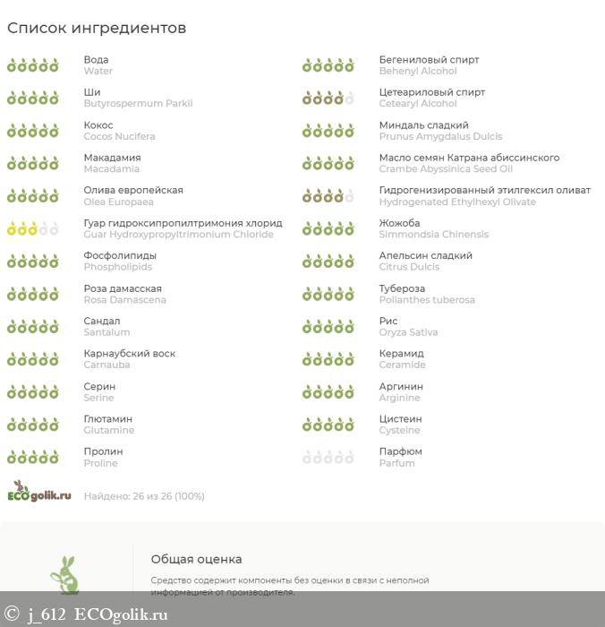 Состав кондиционера-маски (взят с официального сайта бренда): вода деионизированная, бегениловый спирт, масло карите, цетеариловый спирт, масло кокосовое, масло косточек сладкого миндаля, масло макадамии, масло крамбе, неомыляемые вещества гидрогенизированного оливкового масла, гидрированный этилгексилоливат, гуаргидроксипропилтримония хлорид, масло жожоба, фосфолипиды сои, эфирное масло апельсина, эфирное масло розы, эфирное мало туберозы, эфирное масло сандала, воск рисовых отрубей, воск карнаубский, церамиды, серин, аргинин, глутамин, цистеин, пролин, фруктовый ароматизатор (ананас, яблоко, персик) идентичный натуральному.