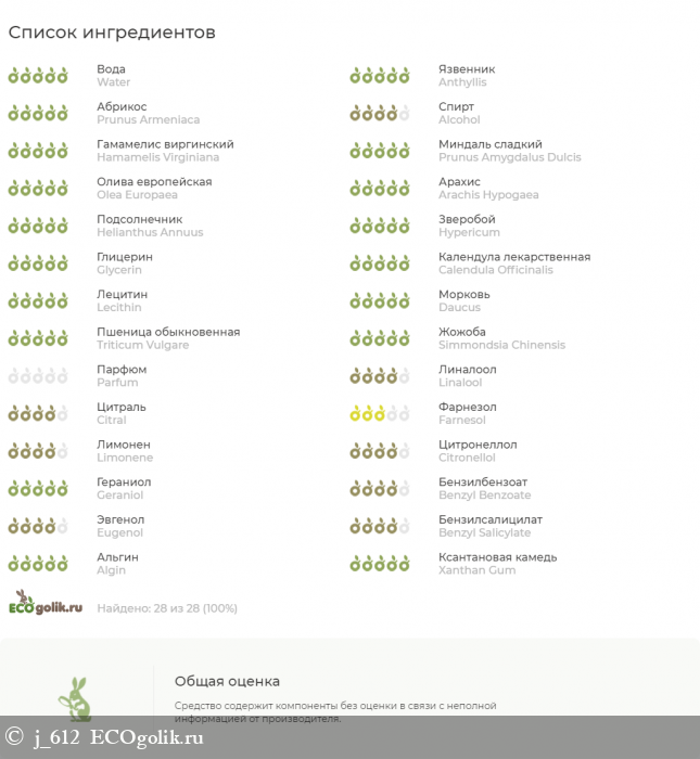 Состав флюида пропустила через бесплатный онлайн сервис Экоголика. Без перевода - сложно, конечно, разобрать что есть что, но сервис в этом очень круто помогает. Радует такое изобилие зеленых компонентов. Не спроста же данный бренд относят к люксовой натуральной косметики. Ссылка на проверку ТУТ (отдушка на основе эфирных масел).