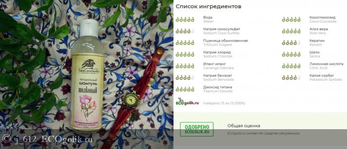 Изначально хотела поставить пятерку, но решила всё же снять одно яблочко. Всё-таки была реакция кожи головы, которая меня несколько огорчила. Но стоит отметить, что у меня такое бывает. В любом случае шампунь "Шёлковый" Take Care Studio очень даже неплох - приятно пахнет, пенится очень хорошо, очищает вполне себе прилично, волосы словно после кондиционера. И если его использовать чередуя с другим шампунем, я это делала с твёрдым, то никакого дискомфорта у меня не возникало.