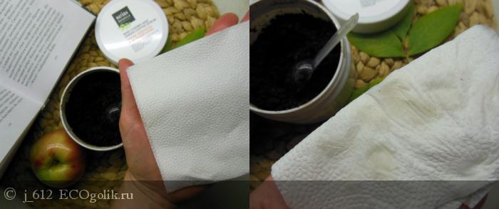 Но, что хочу ещё добавить, скраб скрабу рознь. Бывает так, что скраб требует дополнительного смывания с кожи, поскольку при вытирании Вы можете "запачкать" кофейными остатками полотенце. С этим скрабом вышло всё намного проще.