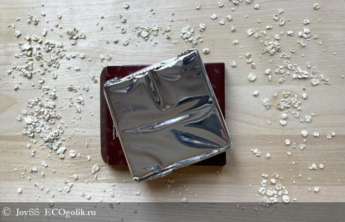 Внутри картонной коробочки мы видим фольгированный пакетик. Шоколад надёжно защищён от любого несанкционированного покушения на него. Это актуально, если шоколад реализуется в офлайн магазинах, а не хранится на складе ИМ, откуда напрямую отправляется к покупателю.