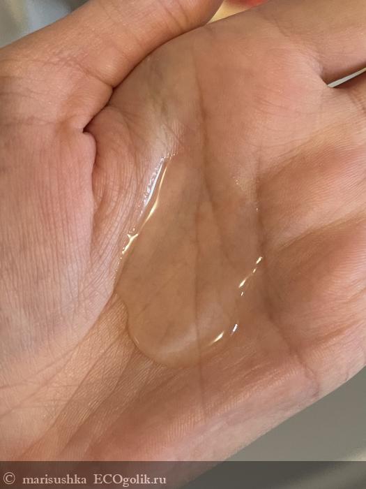 Что бы я отметила как самое необычное? Что выделяет продукт? Это как раз именно это скольжение вместе с кремовой пенкой, что гель создаёт на коже, – вот это просто восторг! И при этом несмотря на то, что есть эта «масляная» часть, продукт не жирный, не оставляет плёнку, не требует большего количества времени, чтобы смыть, и на кожу он воздействует мягко, бережно и нежно. Очищение получается действительно деликатным.
