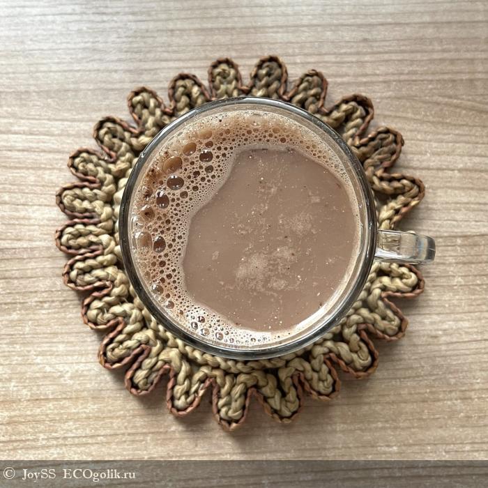 Ощущение, что заварили какао, а потом очень сильно разбавили его водой. Из-за этого оно потеряло насыщенность шоколадных оттенков, сладость и глубину вкуса.