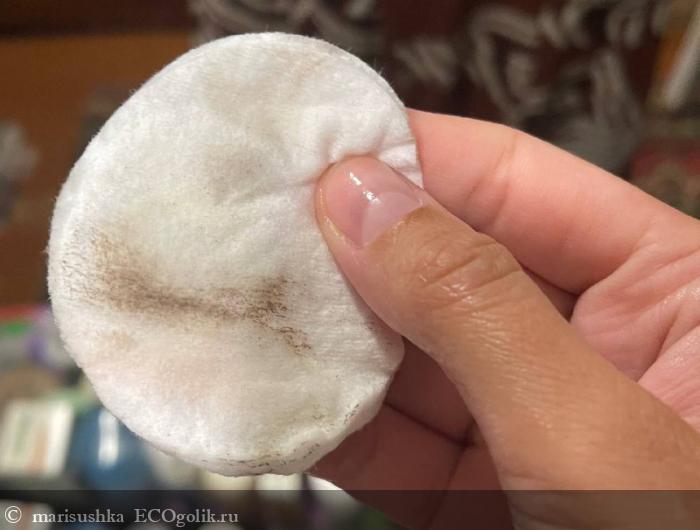 Можно это сделать и водой, конечно, но так получается бережнее по отношению к коже. К тому же, летом мой комбинированный тип ушёл в сторону повышенной жирности, так что не будет лишним даже на этапе умывания использовать что-то, что обладает полезным эффектом в этом направлении. Если на коже что-то есть из косметики, то и оно смывается. Например, тушь для бровей и румяна полностью смываются даже гидролатом.