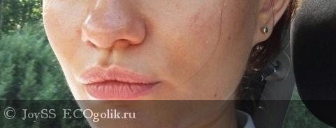 Также нашла летнюю фотографию. На губах гигиеническая помада Sante с маслом ши + консилер Neobio + помада "Коралловая страсть" + летний загар. Гигиеническая помада снижает интенсивность цветов, а смешивание консилера и помады делает цвет розовым, и на фоне немного загоревшего лица оттенок помады смотрится более пастельным и нежным.