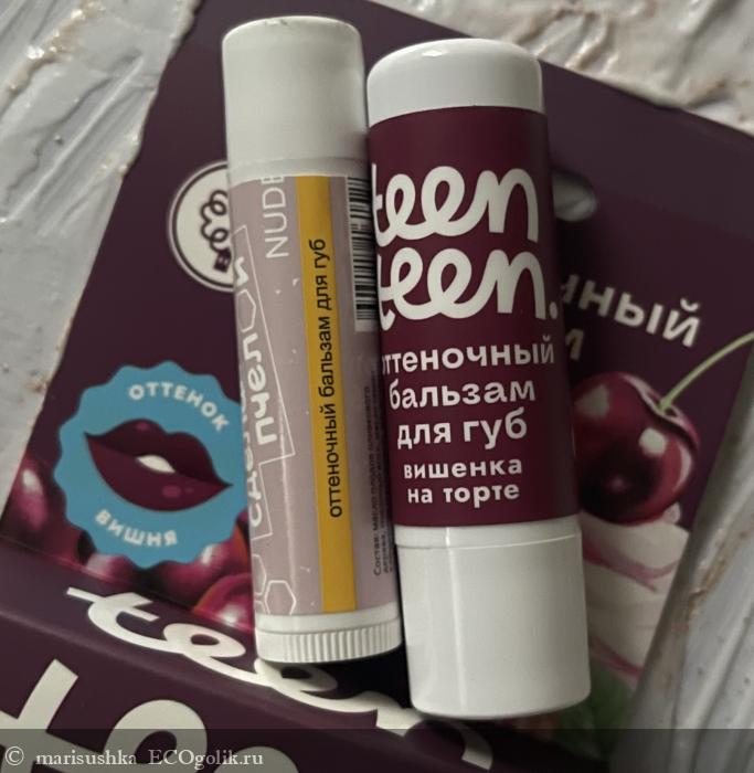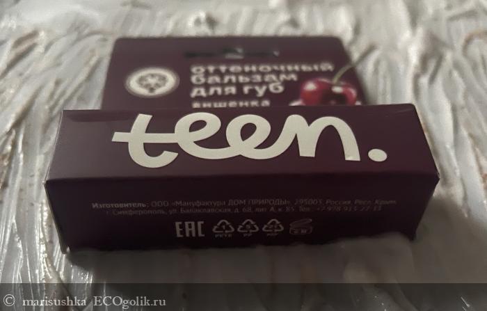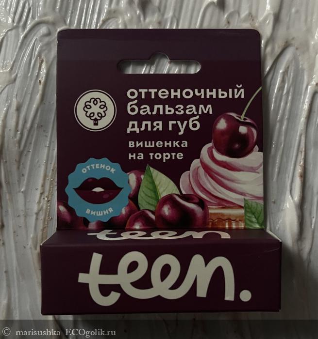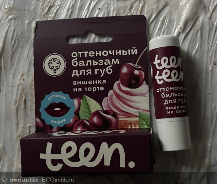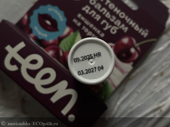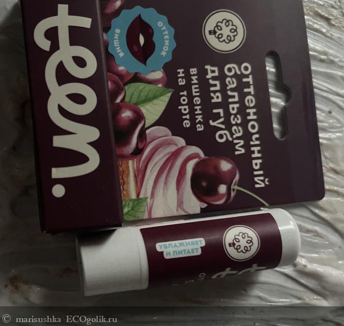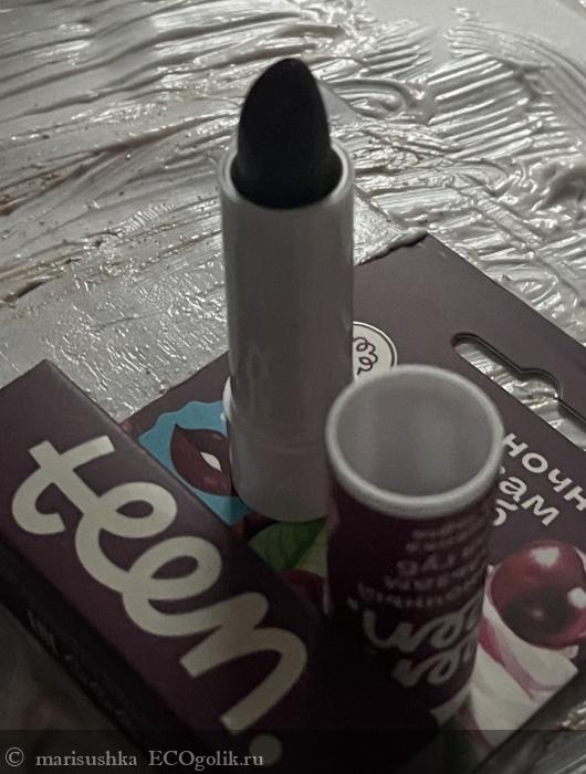 Кстати, у него на упаковке написано "Teen" - подросток, но на самом деле это обычный оттеночный бальзам для губ, как остальных производителей - +/- одинаковая база из восков и масел и оксиды железа, которые придают ему вишнёвый цвет. Ничего подросткового кроме оформления и, наверное, названия - "Вишенка на торте" - здесь нет. Я в том смысле, что это классический состав. Не какой-то именно детский или подростковый, например, только с растительными пигментами вместо минеральных, а просто обычный состав для оттеночного бальзама.