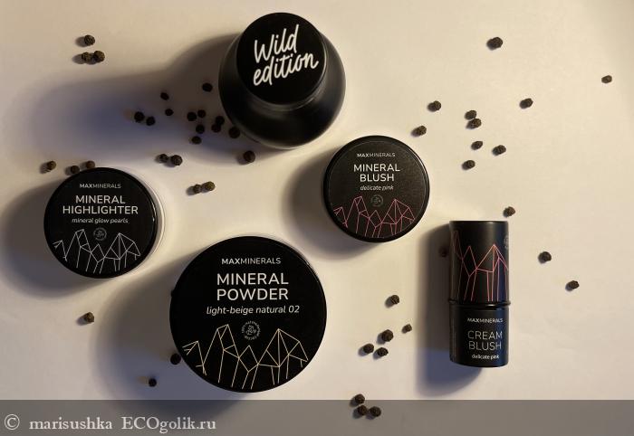 , а потом дождалась свою очаровательную малышку, которой теперь с удовольствием пользуюсь, но подспудно оставалась вот какая мысль - как-то здесь на портале в комментариях я увидела название бренда "Макс Минералс", который производится тоже брендом Экомейк. Запомнила, посмотрела ассортимент, и на этом всё, а тут как начала пользоваться их основой, то сразу захотелось и румяна, и хайлайтер в рассыпчатом формате, и как раз вовремя я снова вспомнила про Макс Минералс. Но обо всём по порядку