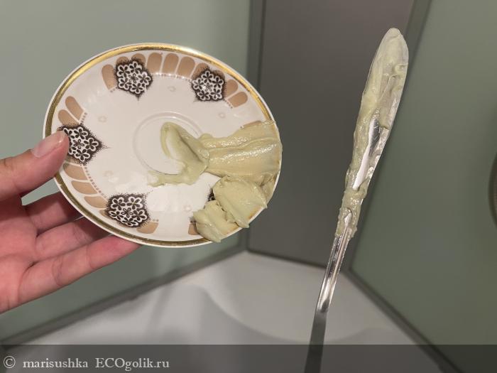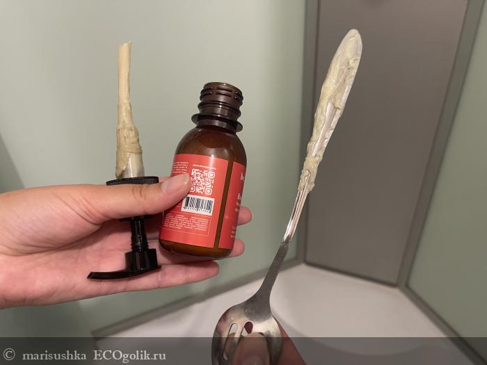 Правда, есть один важный момент! Если бы маску можно было дозировать дозатором, то было бы удобно нажимать и выдавливать её прямо на проборы, после чего уже распределять по коже, а так как здесь вынимаешь ложкой порцию заранее перед душем, то вынимаешь ориентировочно, потому мне хватило маски всего на 4 раза, но с работающим дозатором, как мне кажется, её бы хватило ещё на несколько раз.