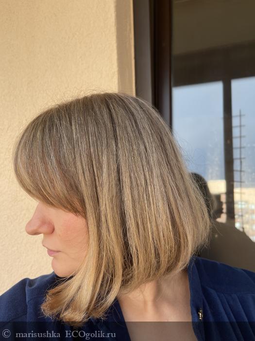 В какой-то момент понимаю, что ходить на тонирование в салон мне надоело. При стоимости основного окрашивания (обесцвечивание и мелирование) ещё и раз в месяц ходить на тонирование - выходит накладно. Пробую тонироваться дома сама оттеночным безаммиачным бальзамом, купленным в магазине косметики рядом с домом, и результат мне нравится. Он такой же, как и в салоне. За исключением, конечно, укладки
