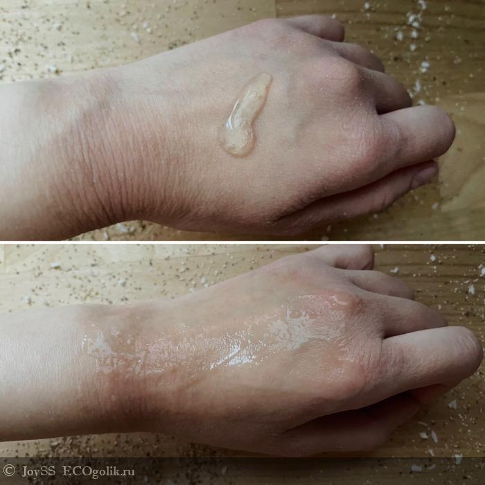 Итак, в составе нет добавленной отдушки. Чем же пахнет гель? Даже не знаю, как описать. Наверное, его аромат напоминает немного прелый запах, но само слово «прелый» рождает какие-то неприятные ассоциации. Я бы назвала его нейтральным. Нет в нём выраженной сладости, травянистости, цветочности. Ничего конкретного даже и не назовёшь. Есть что-то растительное или как будто бы это слегка прелое сено, но у меня он не вызывает неприятных впечатлений.