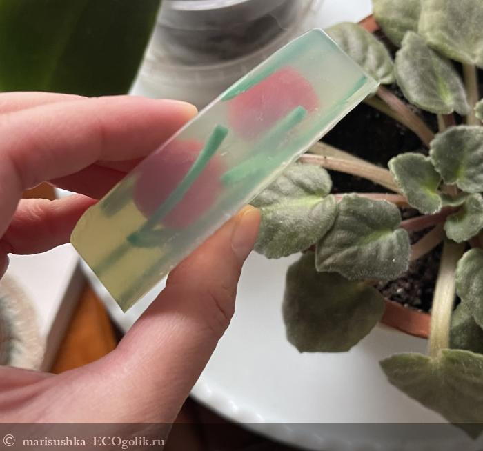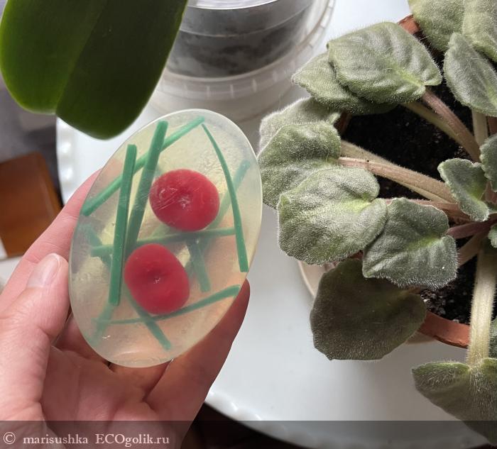 Мыло действительно завораживает взгляд, хочется его рассматривать, а ещё в начале я всё думала, а вдруг вишни настоящие?
