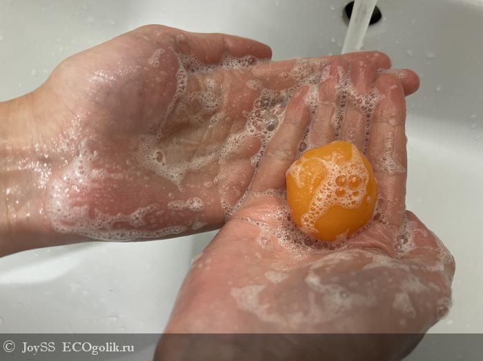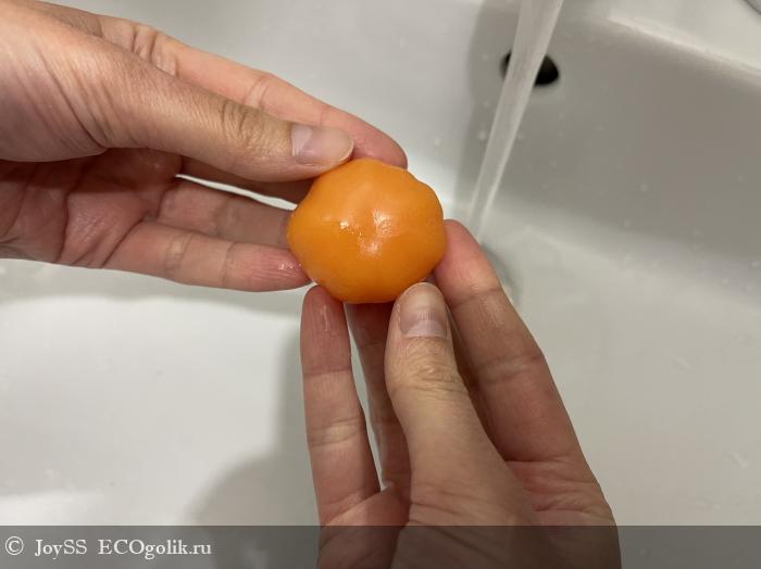 Выглядит мыло точь-в-точь, как настоящий мандаринчик. Даже не хочется выпускать его из рук – настолько оно милое