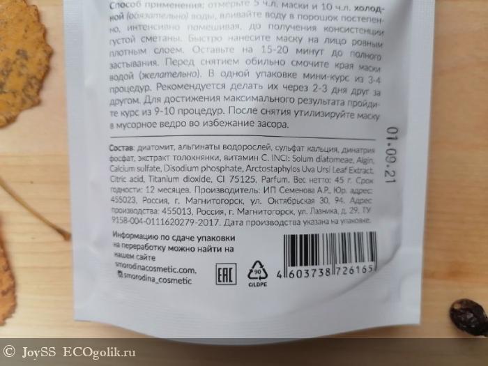 В рамках тестирования мне представилась возможность познакомиться ещё с одним продуктом от бренда SmoRodina. И это освежающая альгинатная маска с витамином C.