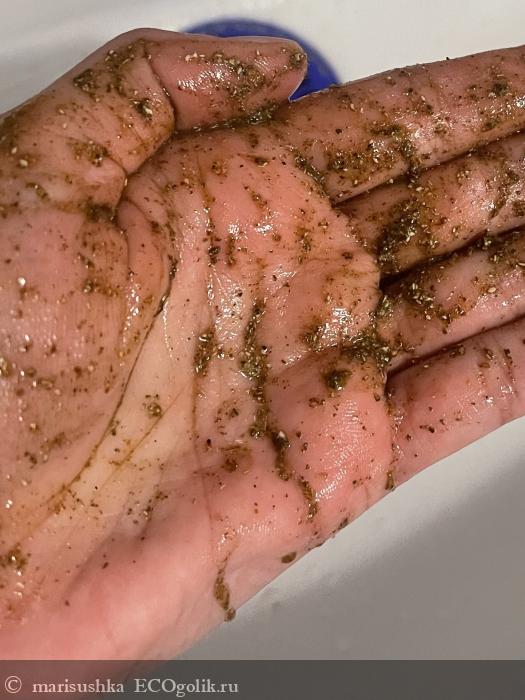 При смешивании с водой получается кашица, которой комфортно массировать кожу. Нет грубых или крупных частичек, которые бы травмировали кожу.