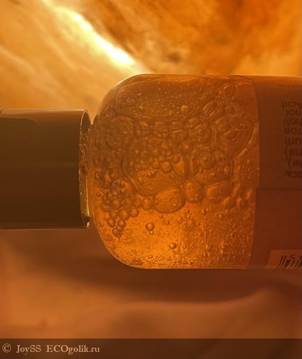 Ощущение, что во флакончике не пенка, а какой-то драгоценный эликсир янтарного цвета, а если у вас в ванной, например, есть подсветка тёплого оранжевого цвета, то тогда этот «янтарь» будет играть и переливаться, а если флакончик ещё и как следует встряхнуть, то сияющие на свету мыльные пузырьки будут создавать прямо особую атмосферу, хотя, казалось бы, средство очень «практичное», но этот цвет так и приковывает к себе внимание.