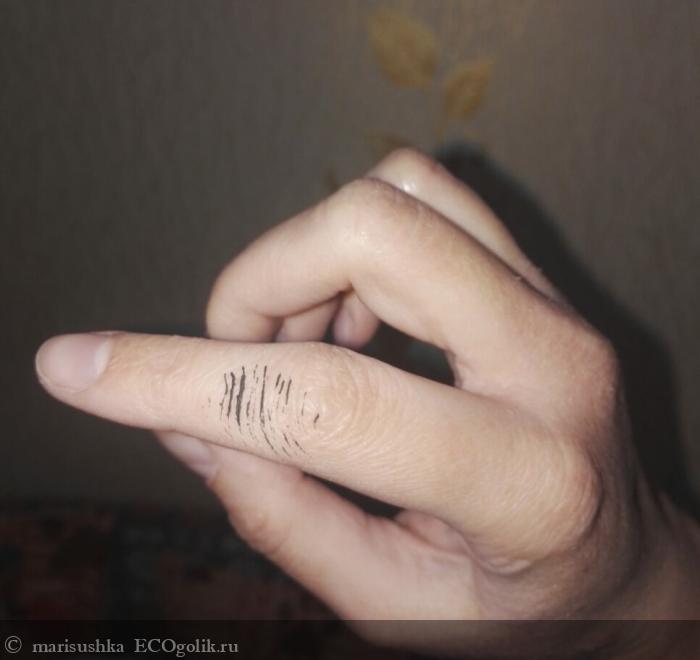 Уже позже, присмотревшись к фотографиям, увидела, что при нанесении тушь чуть-чуть осыпалась, но это легко было убрать. Я вот даже не заметила