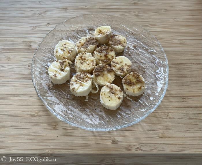 Моя самая любимая и максимально простая вариация десерта – это нарезать дольками банан, посыпать сверху кэробом и полить сиропом, либо кэроб с сиропом можно предварительно смешать отдельно, и полить банан сверху этой «шоколадной» пастой.