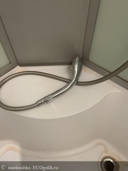Опробуем его на поддоне душевой кабины, который и в принципе требовал чистки, что видно по розовым разводам, а ещё раз уж всё равно собиралась его мыть, то помыла в нём летнюю и осеннюю обувь, ведь когда как не в декабре убирать летнюю обувь на зиму?
