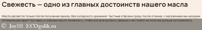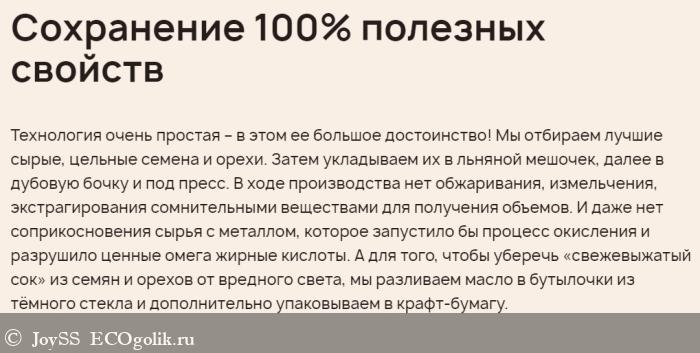 «Тыквенное масло обладает превосходным вкусом с лёгкой ореховой ноткой и нежными ароматом. Улучшает пищевариение, оздоровляет и защищает печень, укрепляет сердце, нормализует давление».
