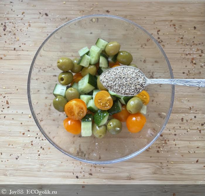 Также, конечно, понравилось добавлять масло в салат. Добавляю сначала ещё порошок топинамбура, чтобы салат стал ещё более полезным блюдом. Сейчас летом этот вариант самый простой и актуальный!