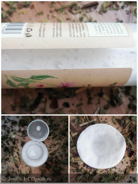 - имеет приятный травяной аромат: скорее, наверное, больше каких-то сушёных трав, но в любом случае после использования он не ощущается на коже;