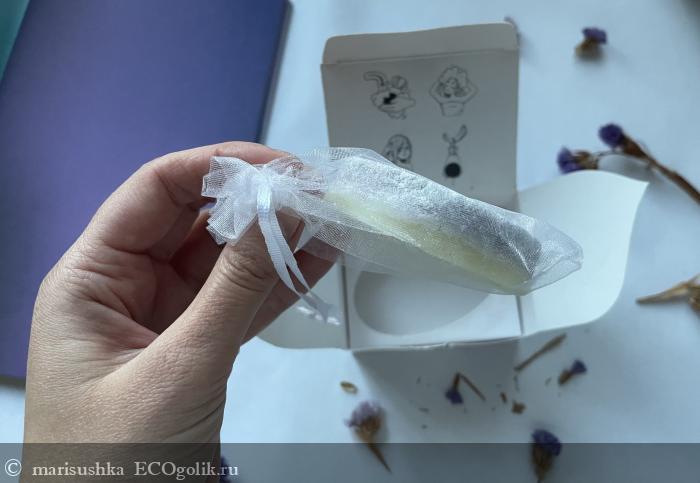 Мешочек позволяет правильно просушивать шампунь. Можно подвесить его на крючок в ванной, и тогда совершенно точно не придётся переживать о том, что брусочек "поплывёт" из-за неправильной просушки.