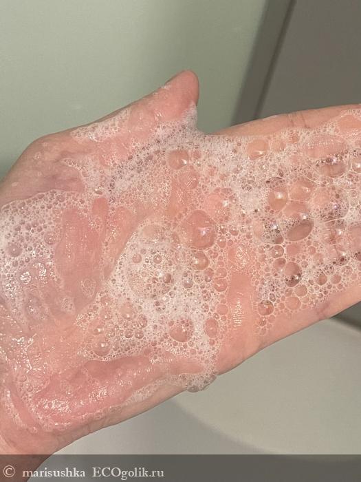 Со своим жирном типом кожи головы я в особенности ценю шампуни, которые так классно пенятся, потому что иногда из-за большого объёма выделившегося кожного сала бывает реально сложно качественно промыть волосы даже за два раза, но с таким пенообразованием получается комфортно вспенивать продукт. Если чувствую, что не хватает, то просто ещё несколько раз провожу мокрым брусочком по волосам.