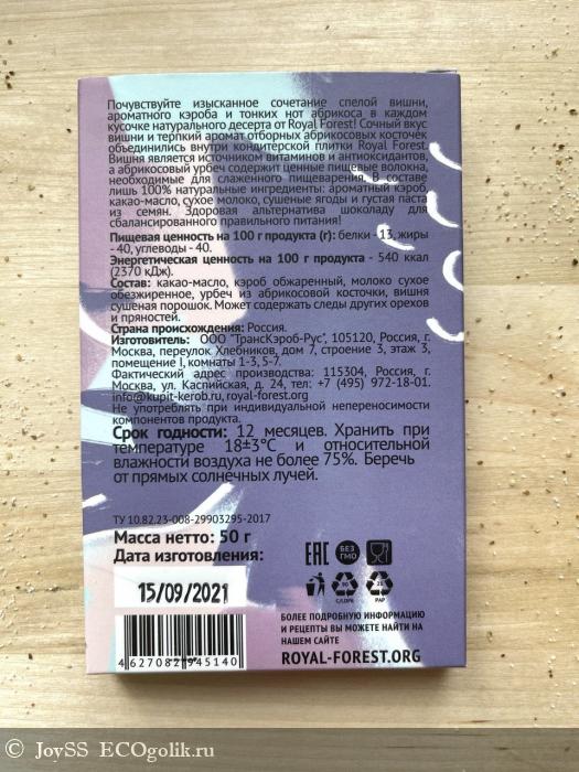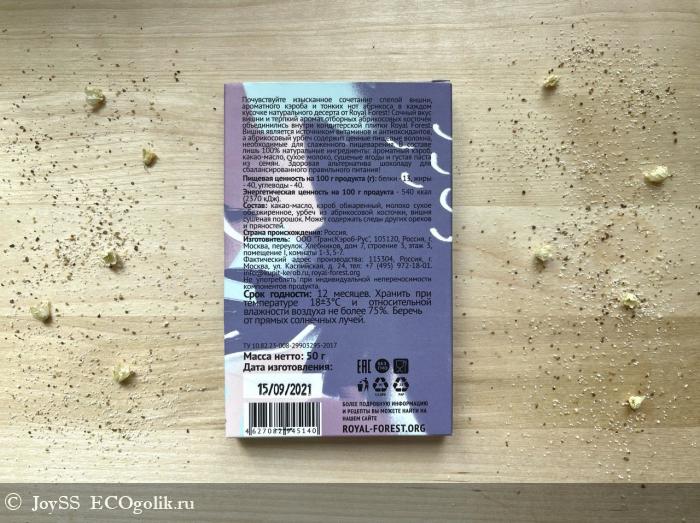 Конечно, такую шоколадку с учётом соотношения веса и цены не будешь каждый раз покупать к чаю, поэтому в экомаркете всегда подхожу к стенду со скидками. На днях там как раз была продукция Royal Forest.