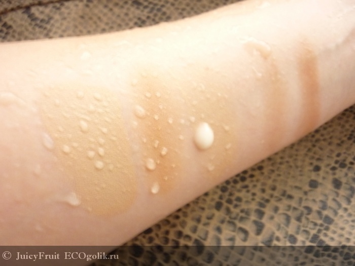 распределила средство, стараясь уделить подопытным одинаковое кол-во времени. После первого смывания следы оставили только первые два участника: тональный крем и мусс: