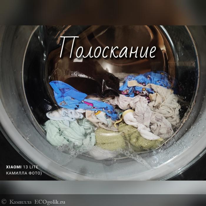 У меня один гель для стирки взрослых и детских вещей (рекомендация аллерголога). Ежедневная машинная стирка у меня на +30 градусах 800 оборотов (для детских вещей) и 1000 (для взрослых) 45 минут. Средства добавляю в зависимости от наполняемости стиральной машинки. Не заливаю средство в барабан (только в отсек). В процессе стирки пены образуется достаточно (много пены вредит стиральной машине). Действительно, средство полностью выполаскивается (белье не шуршит и не "скрипит", в фазе полоскание нет практически пены, никаких разводов на белье не остается), следовательно, нет необходимости запускать дополнительное полоскание (экономно). На постиранных вещах нет запаха (для меня это огромный плюс). Цвет постиранных вещей не меняется - такой же яркий и четкий. Форма одежда не теряется.