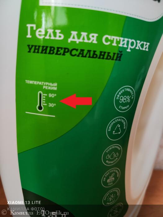 Рекомендуемая температура стирки - от 30°С до 60°С (обратите внимание, что в слайдах к гелю для стирки и на этикетке самого геля температурный режим от 30 до 90 градусов. Помним, что энзимы разрушаются в горячей воде, и поэтому их практически не используют в средствах для высокотемпературной стирки — 60-90 градусов).