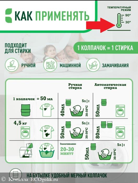 ). Как видно из фотографий "после" даже без использования пятновыводителя, гель отлично справился с загрязнениями. Для загрязнений посильнее или для застарелых пятен, рекомендую замачивать или использовать пятновыводитель (есть ещё вариант - немного самого геля нанести перед стиркой на пятно и постирать привычным способом). Нет необходимости использовать кондиционер, т.к. гель обладает кондиционирующим действием. Экономный расход и мерный стаканчик у геля.