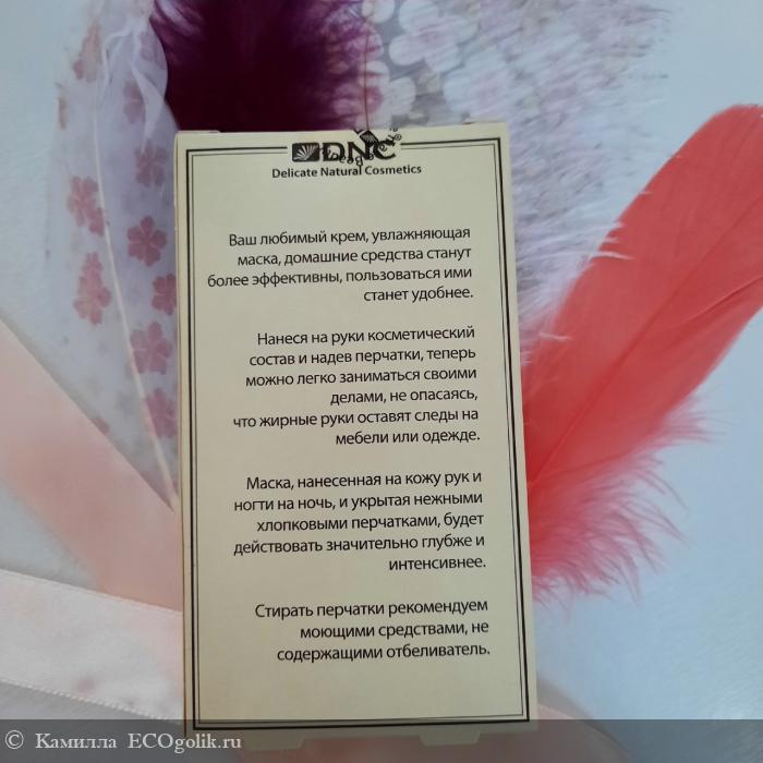 Сами перчатки белоснежные, тонкие и нежные. Я использую их на ночь. Следы на постельном белье или пижаме не были замечены. Также я не оставила следов на темной мебели, хотя крем-маска довольна жирненькая была под перчатками. Это огромный плюс! Ночью они мне не мешали, внимания на них не обращала. Отмечу еще то, что эти перчатки можно купить не только в паре с другими средствами от DNC, но и отдельно)