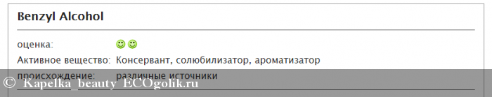 Бензиловый спирт (Benzyl Alcohol) - бесцветная жидкость со слабым приятным запахом. Содержится в эфирных маслах жасмина, гиацинта и др. Используется как растворитель, фиксатор и душистое вещество.
