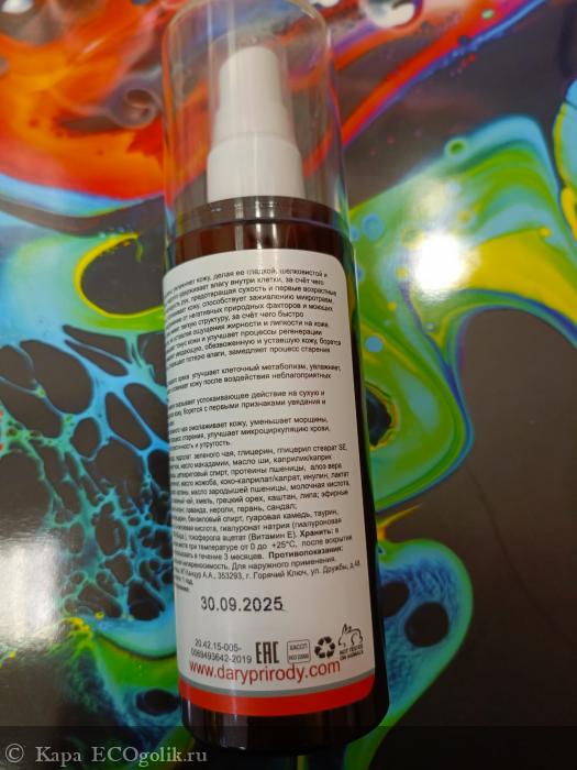 Состав, если заглянуть, впечатляет: гидролат зеленого чая, масло арганы, макадамии, ши, экстракты грецкого ореха, хмеля, липы, таурин, гиалуроновая кислота, А-липоевая кислота... Для 30+ это просто бомба.