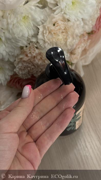 Гель густой, мне очень понравилась такая консистенция, у него приятные пузырьки, он очень хорошо пенится.
