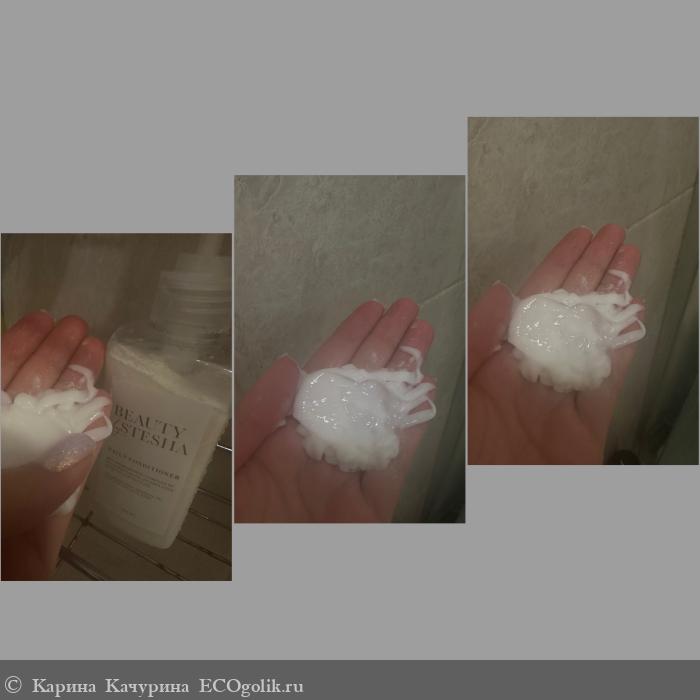 Консистенция у кондиционера очень удачная, кремообразная. Легко наносить на волосы, он не растекается, обволакивает волос с каждой стороны.