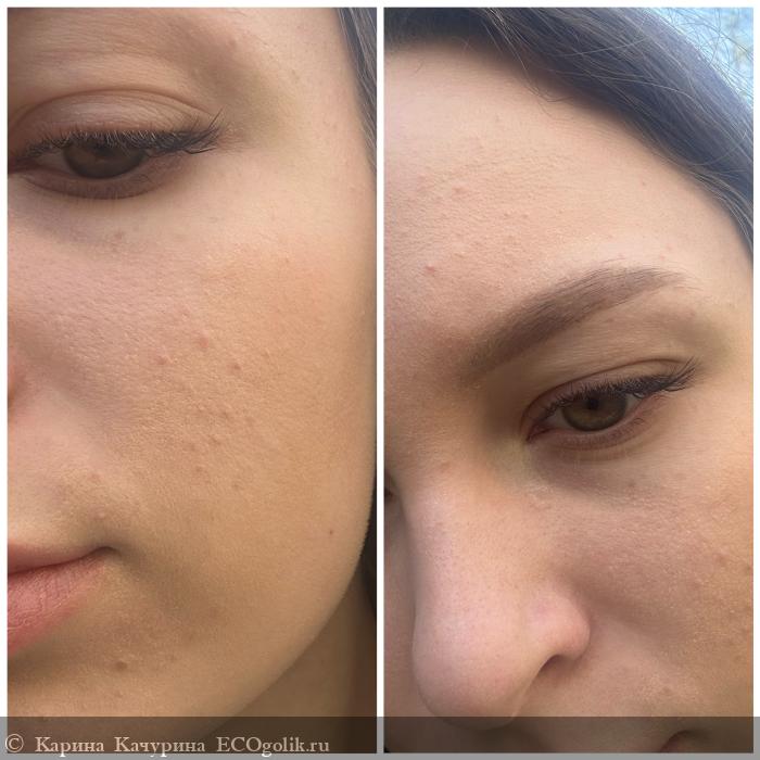 Покрытие данным средством получается довольно легким, он выравнивает тон и перекрывает красные участки.