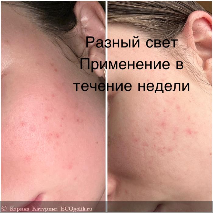 Итак, результат за неделю: по фото не сказать, чтоб прям имеются четкие изменения или улучшения, но сыворотка реально лучше заживляет, восстанавливает кожу, на свежие высыпания и несовершенства РАБОТАЕТ.