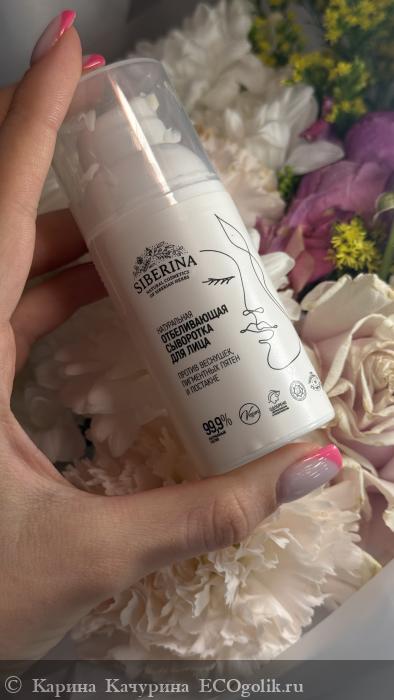Одним из последних средств стала отбеливающая сыворотка для лица от бренда Siberina. Средство предназначено для борьбы не только с постакне, но и с пигментными пятнами, и с веснушками, то есть борется с пигментом.