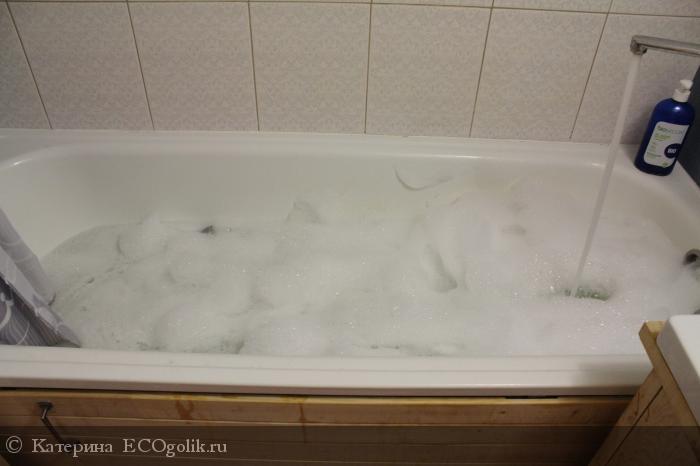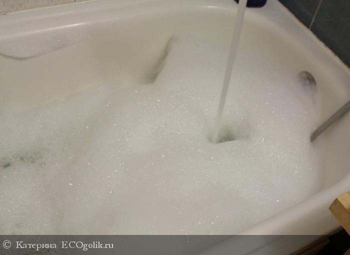 Кстати, следов никаких в ванной пена не оставила. И поскольку ингредиенты в составе достаточно мягкие, ее не требуется смывать с тела гелем или мылом, достаточно просто ополоснуться водой.