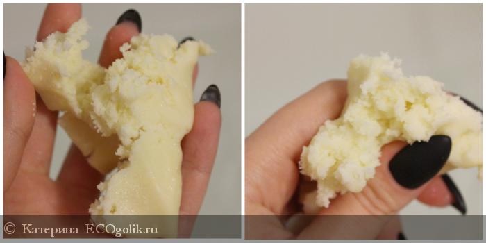 Сама пена выглядит как небольшой твердый брусочек, весьма податливый, если попытаться размять его. Напоминает марципан.