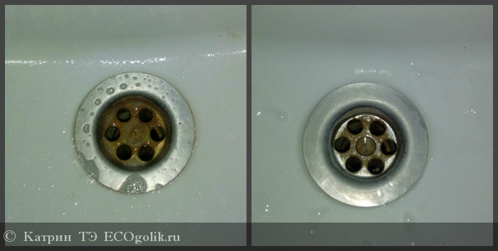 После такого ошеломительного успеха, я решила дать нашему средству задание посложнее. Как можно увидеть из фото, оно без каких либо усилии справилось с раковиной.