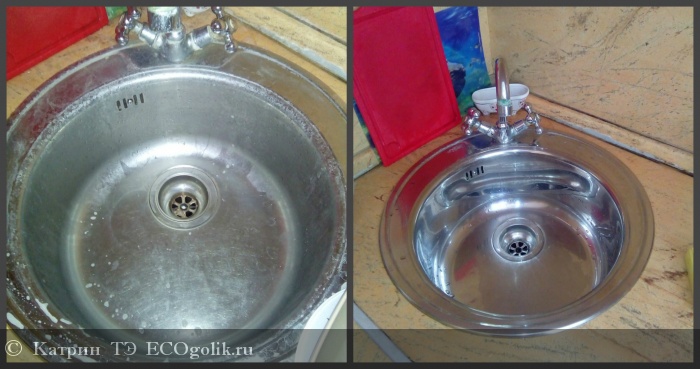 Далее я занялась раковиной на кухне. но и тут наше чудо-средство показало себя с лучшей стороны.